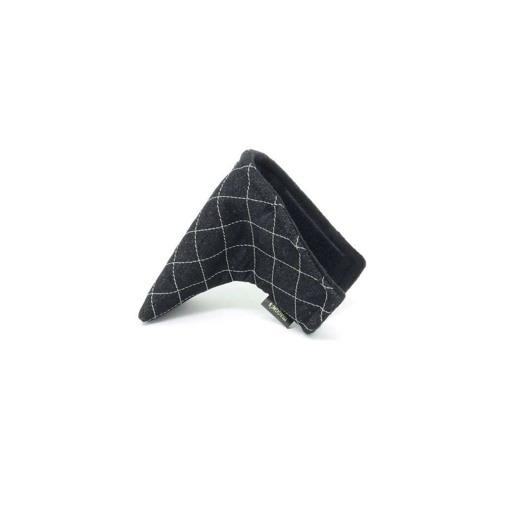 The unique design of the putter head cover is a perfect complement to either the classic Keyhole or traditional Pipe driver and fairway wood head covers. Each putter cover has a triple polyester inner lining for added club protection and a velcro closure for a secure fit. The Maggie tag is inserted in the side seam.